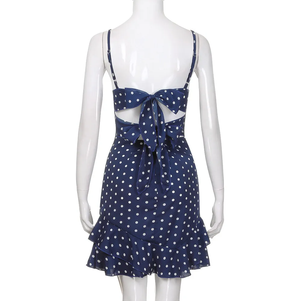 Женское вечернее платье, летнее Повседневное платье-футляр из полиэстера в горошек с принтом сзади и бантом на бретельках