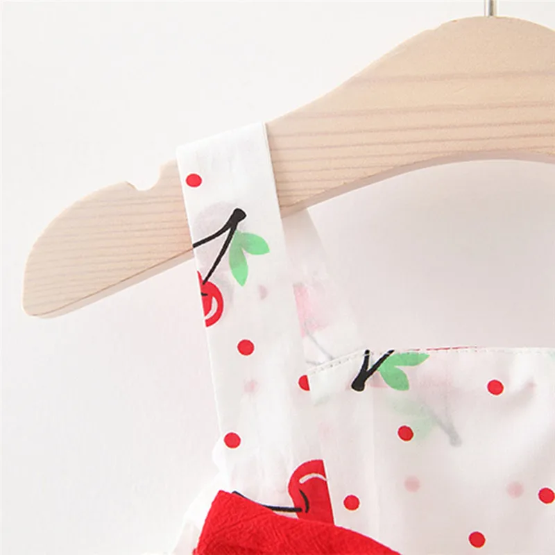 Платья принцессы без рукавов в горошек с вишенками для маленьких девочек; одежда с бантом и шапкой