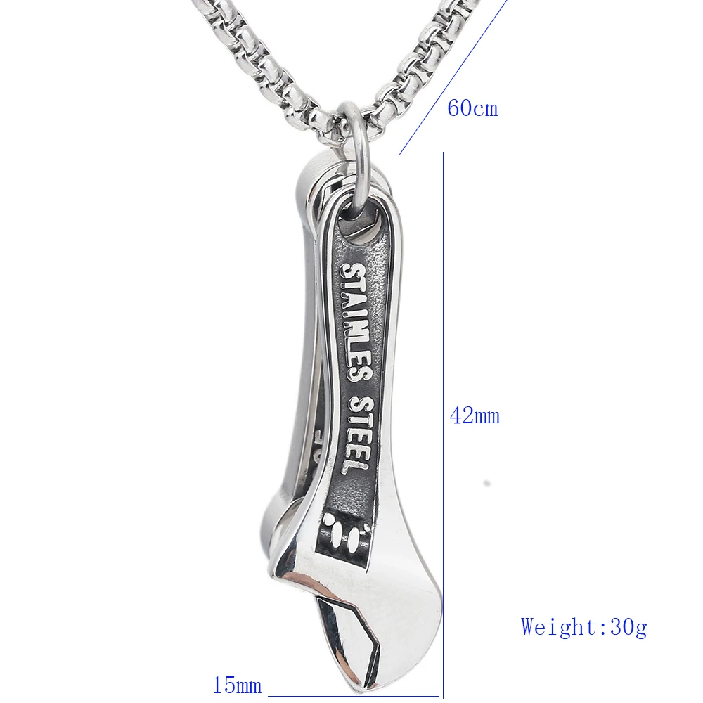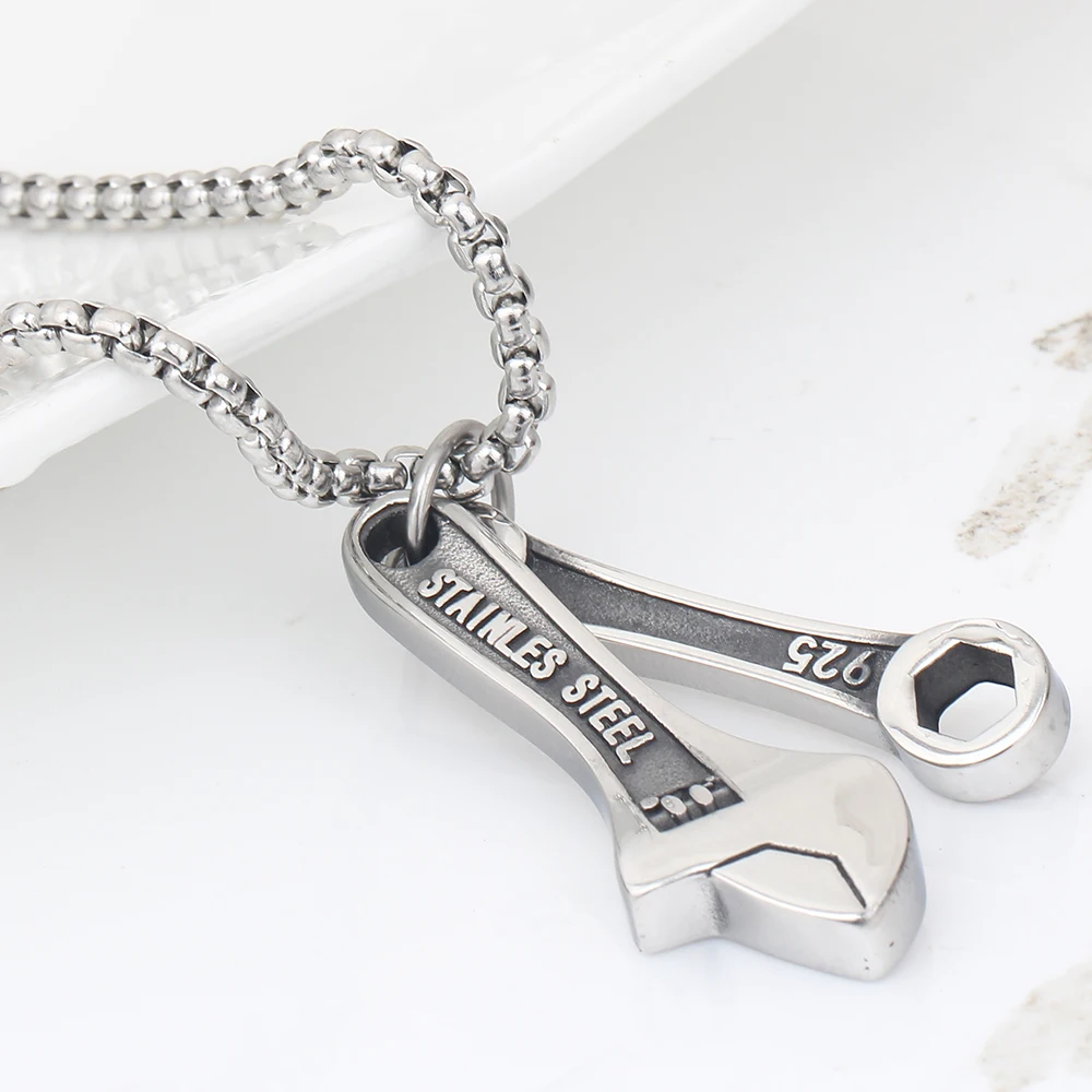 Men's Stainless Steel Wrench Spanner Pendants Necklaces With Silver Color Link Chain Hot Punk Gifts Jewelry Necklace for Men