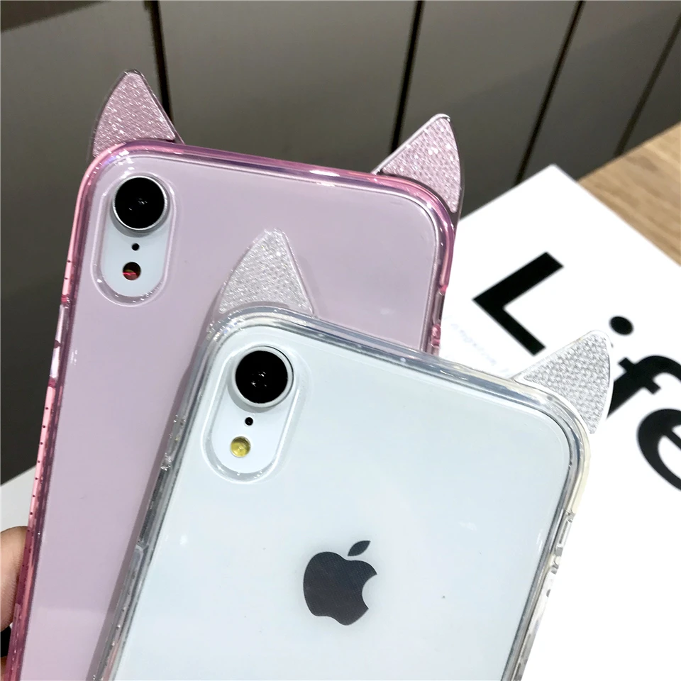 Женские нарезанные Мультяшные кошачьи уши Алмазный Корпус из ТПУ для iphone XS MAX XR 6 6s 7 8 X Plus чехол Блестящий силиконовый чехол для телефона