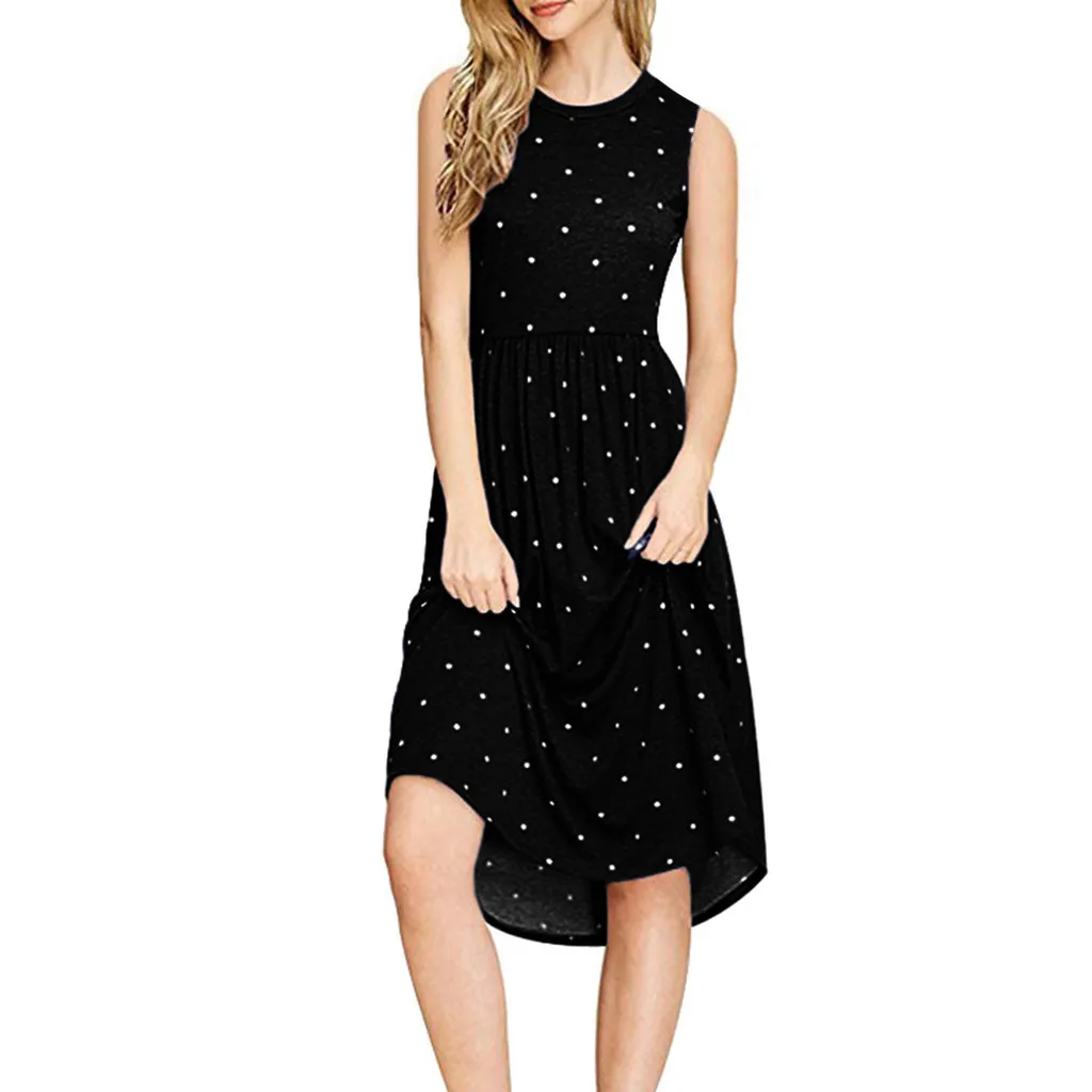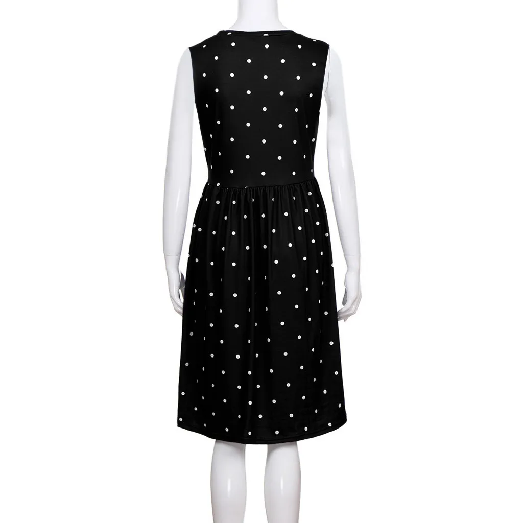 Женское летнее Плиссированное свободное Повседневное платье миди с карманами в горошек