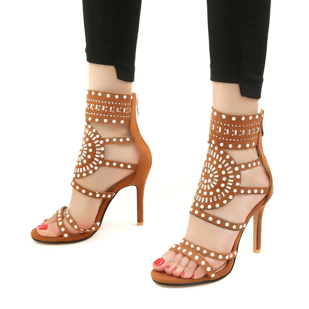 Женские босоножки на тонком высоком каблуке Sgesvier, вечерние туфли из флока на молнии с открытым носком, G434, лето 2019