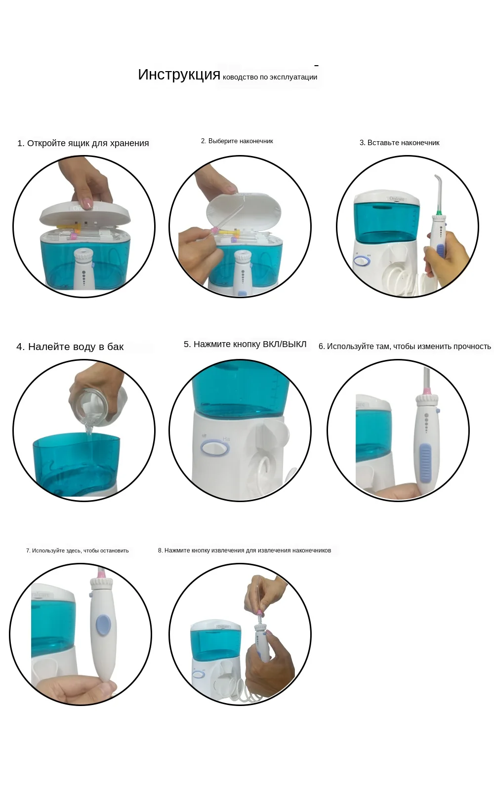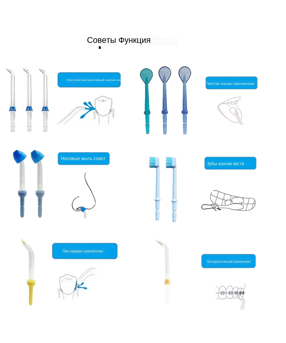 1. Вся семья может использовать стоматологический спа ирригатор полости рта 2. 12 различных трубок для ирригатора полости рта, 6 функций. Очиститель зубов 360 ° поможет вам предотвратить и уменьшить зубные и носовые заболевания 3. Одна кнопка паузы и регулировочный механизм в ручке, удобны в эксплуатации 4. Ирригатор зубов помогает эффективно предотвращать полости 5. Массаж и возбуждающий гумлин, улучшает кровообращение, снимает зубную боль 6. Вода Стоматологическая flosser электрическая