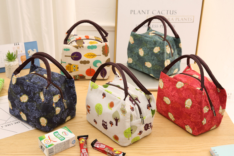 Мультяшная холщовая Портативная сумка для ланча, изолированный контейнер для еды, Термосумка для пикника, сумка для ланча для детей, женские сумки-холодильники