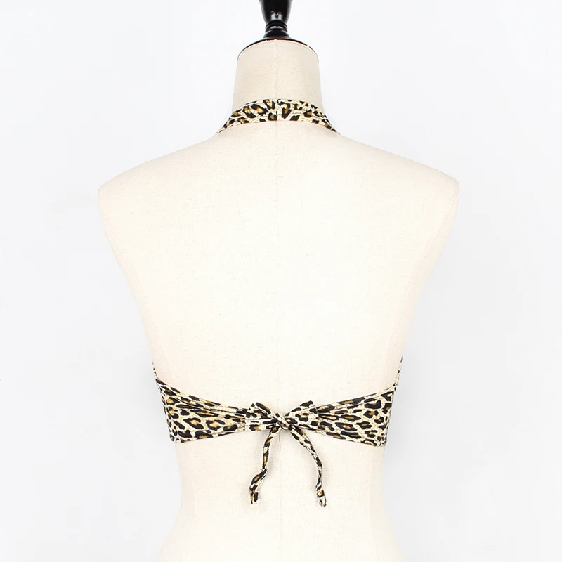 Кроп-топ с однотонным леопардовым принтом, с лямкой на шее, с глубоким v-образным вырезом, с завязками сзади и без рукавов. Сочетайте его со штанами с завышенной талией или джинсами, чтобы завершить летний шикарный образ.