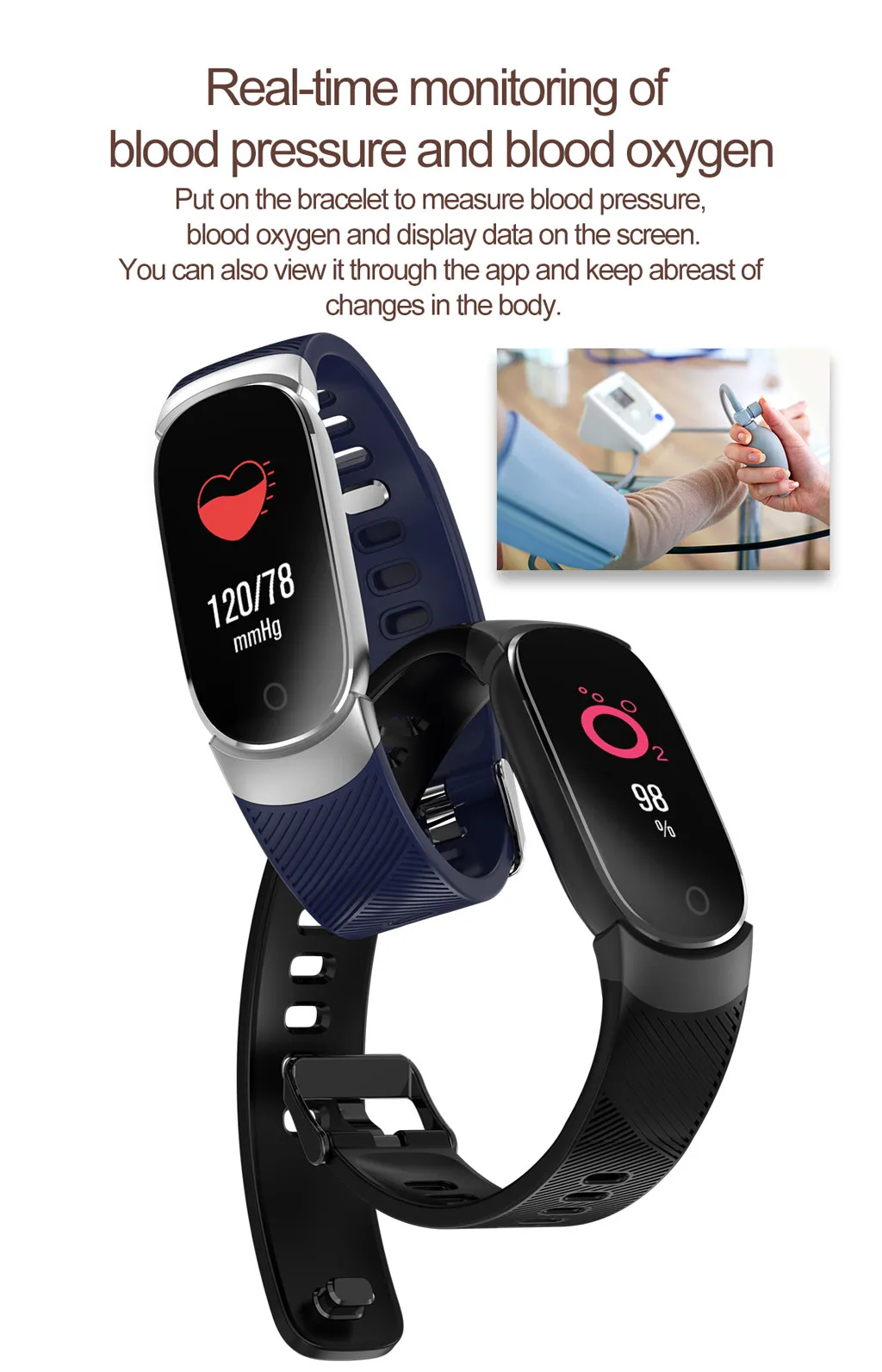 * Функция продукта: водонепроницаемый, мониторинг сердечного ритма, кровяное давление/кровь