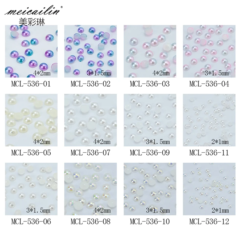 1 коробка Новый многоразмерный Блестящий Жемчуг для ногтей 3D кристалл AB Цвет Смешанные камни для ногтей драгоценные камни полукруглая жемчужина DIY украшения для дизайна ногтей