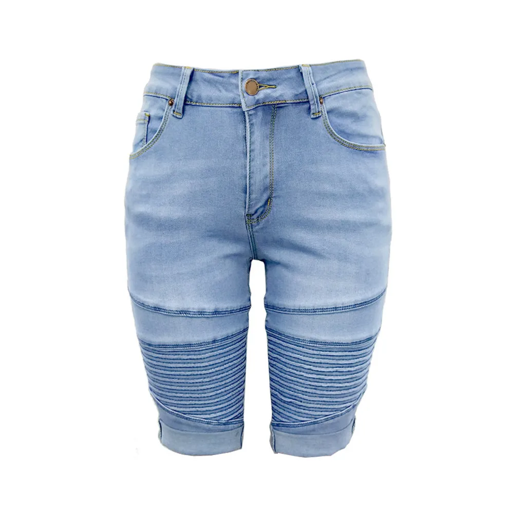 Женские эластичные джинсовые шорты до колена со средней посадкой на молнии