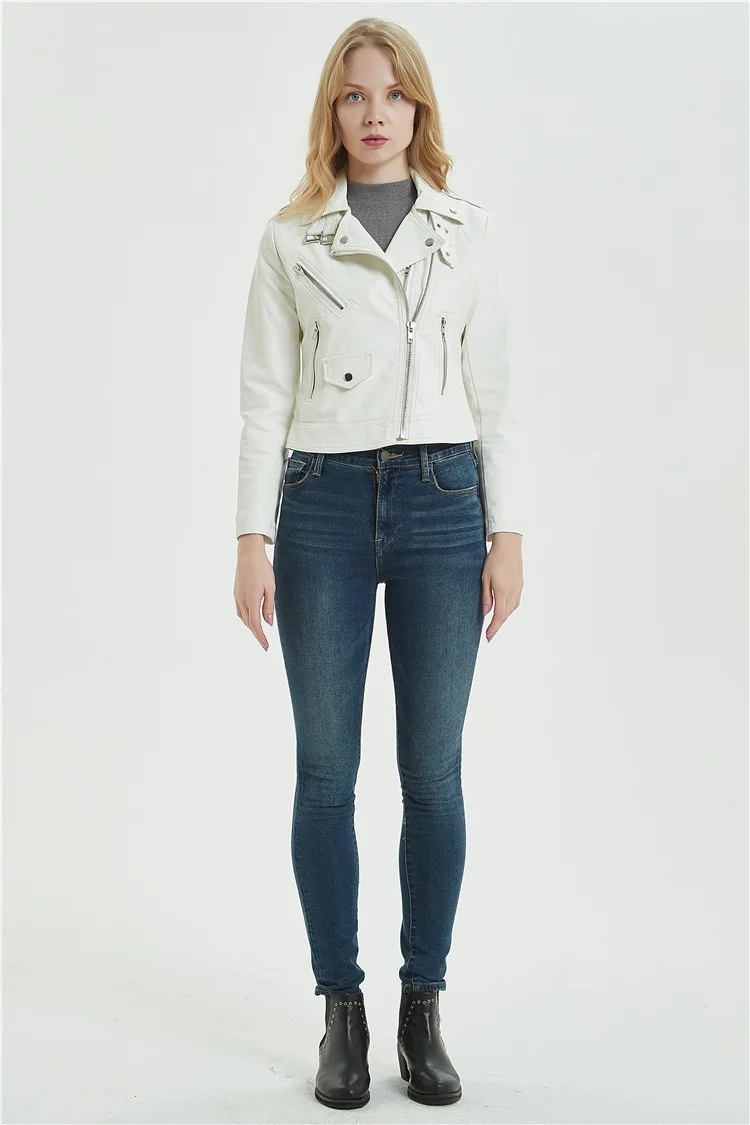 Женская мотоциклетная куртка из искусственной кожи Черная байкерская на молнии