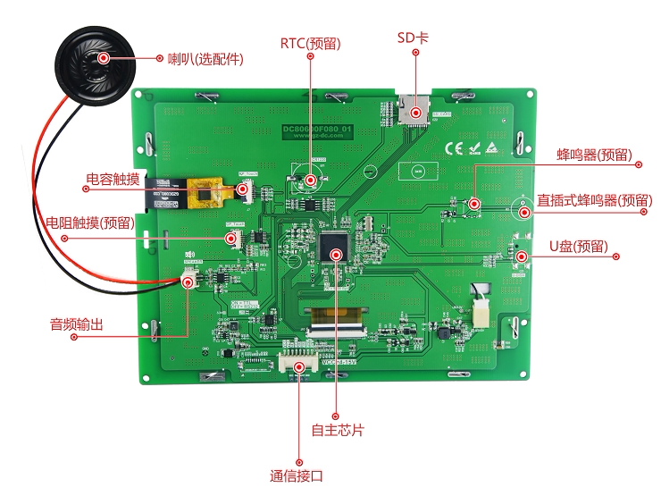 Модель продукта: DC80600F080_1000_0CНазвание продукта: 8,0 дюймовый Серийный порт серии FХарактеристики продукта: 800*600, с конфигурацией, емкостным касанием, с аудиовыходом, 64 МбитПрименение: косметический аппарат, интеллектуальная бытовая техника, замена цифровой трубки, мониторинг безопасности, автомобильная электроникаОсобенности продукта:1. Использование 32-битного эксклюзивного индивидуального процессора, значительно оптимизирует стоимость спецификации, подходит для высококачественных, чрезвычайно сложных групп пользователей.2. Поддержка сжатия изображений JPEG, MP3 аудио, уменьшает емкость памяти до 64 Мбит, удовлетворяет 70% потребностей пользователя.3. Используйте бое/сект пластины для резки стекла (для переключения рынка, без дополнительного уведомления), обычная яркость4. С большим количеством элементов управления конфигурацией и MINIC scripts текст изображения быстро обновляется. Видео, Android-как специальные эффекты отображения требования не поддерживаются5. Промышленный стандарт, воздействие ESD 4КВ, воздух 8кв, медицинский EMI радиационный класс BАппаратная особенность32-битный эксклюзивный индивидуальный процессор с отличной производительностью;_ Встроенный векторный анти-ализационный шрифт может реализовывать любой размер ASCII, GBK, UNICODE шрифт библиотеки дисплей или пользовательский шрифт дисплей;_ Поддерживает сжатие изображений JPEG и MP3 аудио, уменьшает емкость памяти до 64 Мбит и удовлетворяет 70% потребностей пользователей;Поддержка графического отображения текста, изображения, анимации, аудио и кривой.Поддержка различных элементов управления конфигурацией: кнопочное управление, текстовое управление, выпадающее управление, контроль хода, управление прибором, управление кривой, управление слайдером, контроль выбора, управление значками, управление анимацией, запись данных, аудио, управление RTC и двумерное управление кодом;Система имеет встроенную виртуальную клавиатуру, которая поддерживает китайский и английский метод ввода и может настроить системную клавиатуру.Он может хранить более 10 многонациональных языков без изменения пользовательского интерфейса и переключать языки, необходимые системе одной клавишей.Поддержка обновления прошивки u-диска, замена логотипа загрузки и других приложений;ЗатемАрхитектура продукта/архитектура продуктаСерия F принимает 32-битный эксклюзивный индивидуальный процессор, который интегрирует память дисплея SDR, декодирование аудио MP3, декодирование изображений JPEG и другие функции.