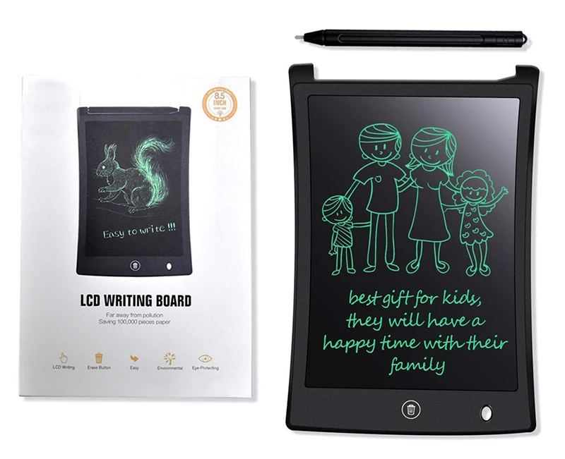 8,5 дюймовая ЖК-доска для письма Записная доска eWriter избавляет от необходимости в бумаге, блокнотах для царапин и клейкой бумагеПримечания-просто пишите и Стирайте. Прочный, ультра-легкий ЖК-экран предназначен для того, чтобы чувствовать себя как письмо с ручкой на бумаге. Изображение остается до тех пор, пока оно вам нужно, и его можно стереть одним нажатием кнопки. Создавайте снова и снова, без необходимости зарядки или подключения. Одна кнопка для удаления Функция удаления одной кнопки, быстрая и удобная. Затем перекрасьте новую информацию. Прочный пом ручка-стилус Вы беспокоитесь об этих бедах? Многофункциональный и применение Подробная информация о продукте LCD + ABS материалы, вес 110 г, размер 220*150*5 мм, батарейка cr2025 и Более 100000 раз перезаписывать жизненный цикл.