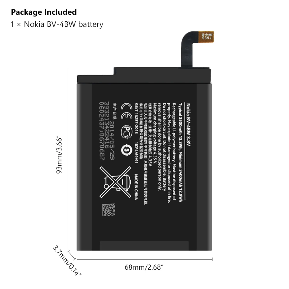 С высокой емкостью 3500 мА · ч, меньше беспокойтесь о том, что ваш сотовый телефон будет мертвым в течение короткого времени.