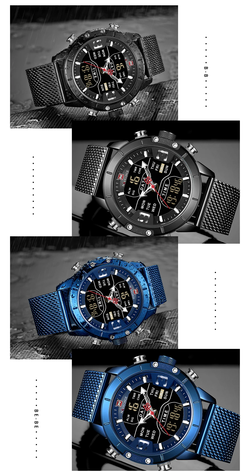 Naviforce часы мужские армейские военные мужские наручные часы Цифровые кварцевые двойной дисплей спортивные часы мужские 30 м водонепроницаемые часы для альпинизма