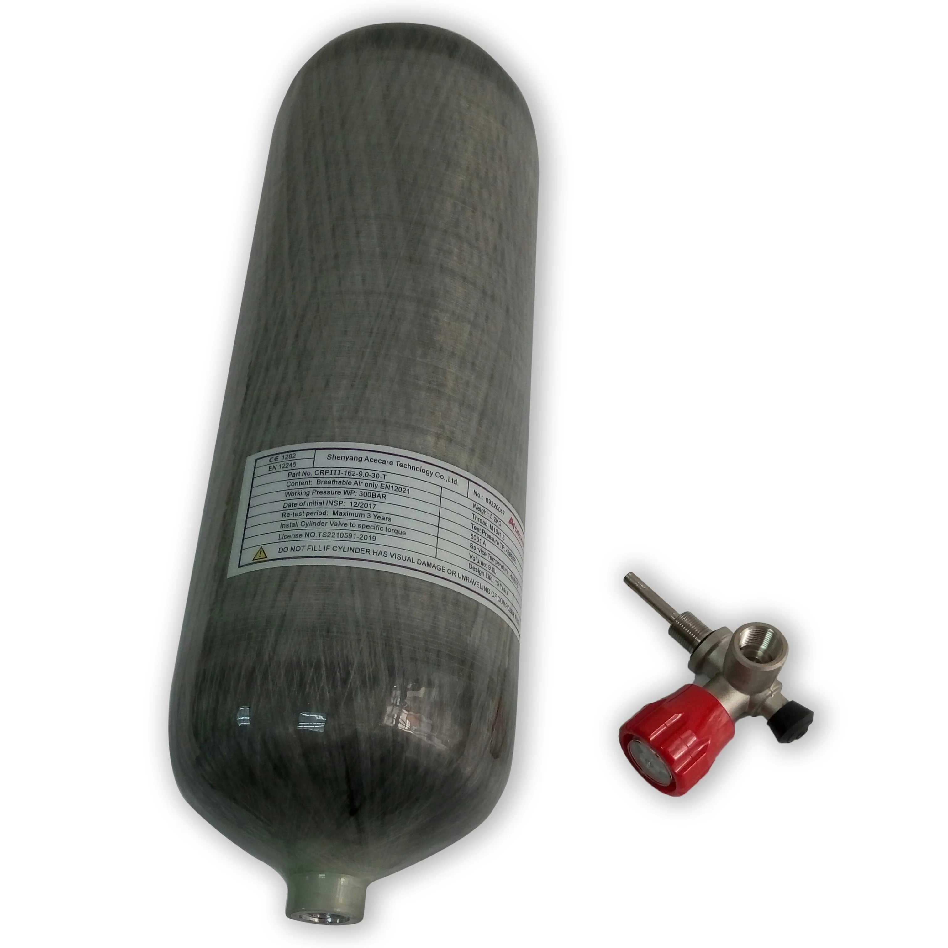 AC10911 Acecare Pcp воздушный бак 9L Hpa 4500Psi M18 * 1,5 CE цилиндр Pcp для пейнтбольного оборудования красный манометр клапан воздушный Pcp