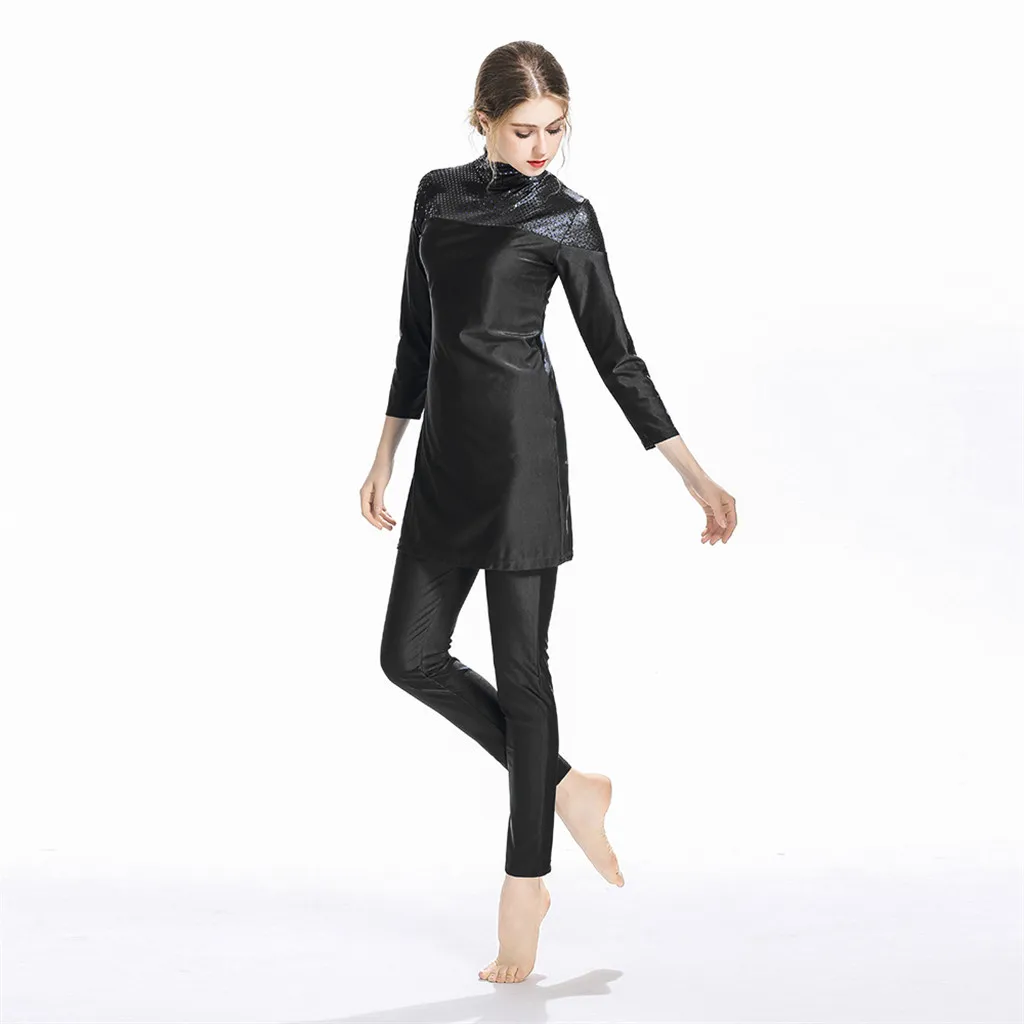 Для женщин мусульманских ванный комплект с кепки одноцветное купальник с узором женская пляжная одежда