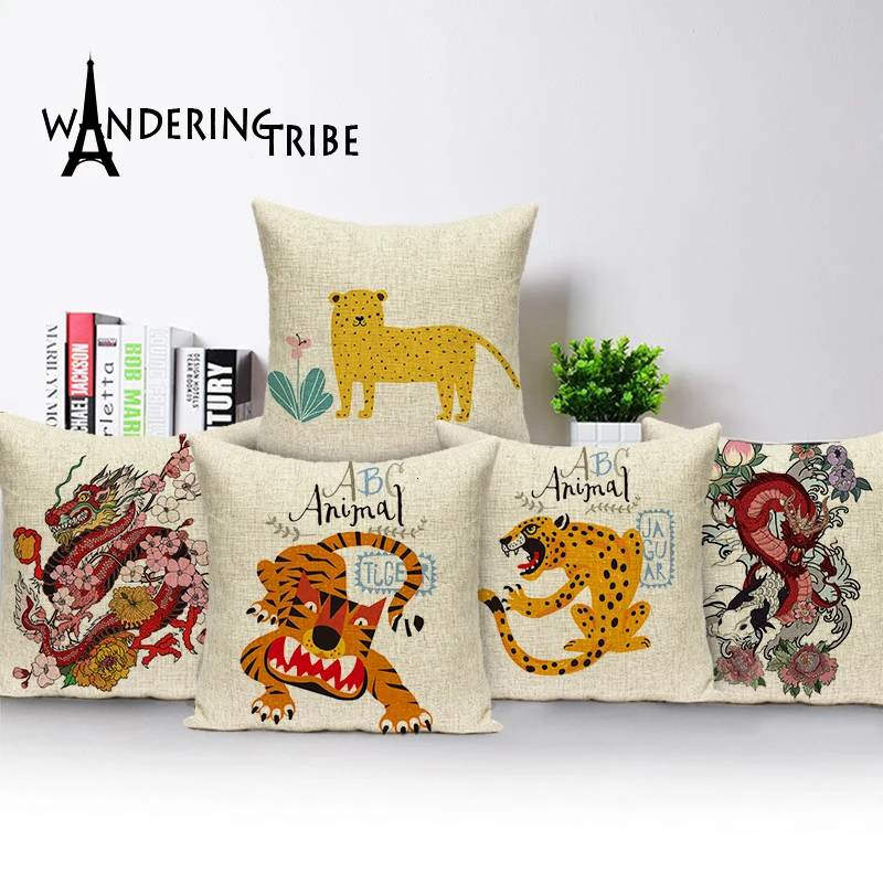 | Декоративные подушки для дивана с изображением животных, желтого тигра, подушки для дивана по индивидуальному заказу, высокое качество, наволочка 45x45 см |
