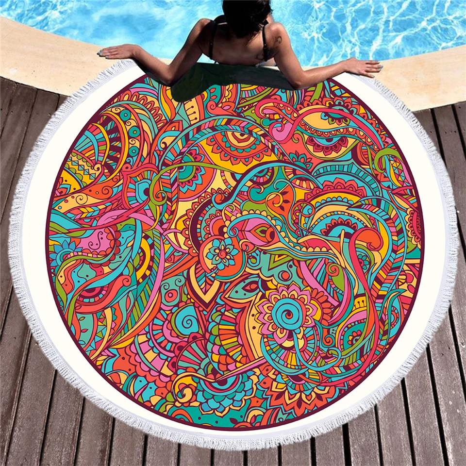 GRIDILANGO индийская Мандала слона микрофибры круглое пляжное полотенце s с кисточкой Бохо для взрослых пляжное полотенце для ванной ковровый гобелен для йоги