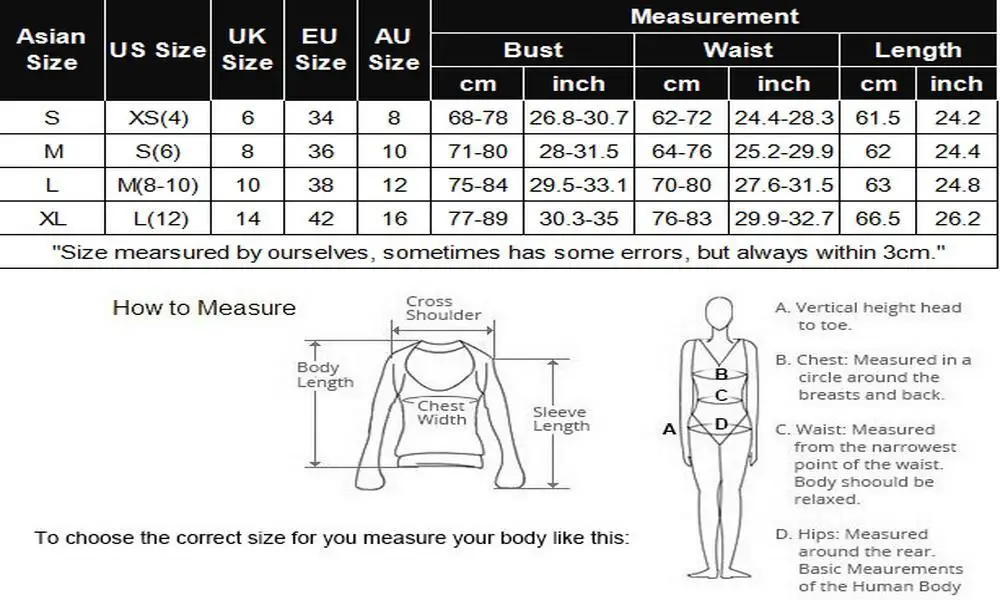 - Размер: 4 размера s (S/M/L/XL) доступны для следующего списка. Пожалуйста, позвольте 1-2 см отличаться из-за ручного измерения, спасибо (все измерения в см и пожалуйста, обратите внимание на 1 см = 0,3937 дюйма)