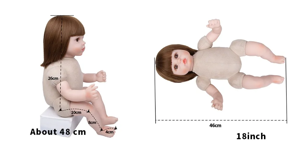 1. Размеры куклы:Наша кукла изогнута, мы измеряем кукольную ногу, как она находится в прямом состоянии, то есть длина от бедра до колена плюс длина от колена до цыпочек: поэтому существует отклонение на 2-3 см из-за различных способов измерения.