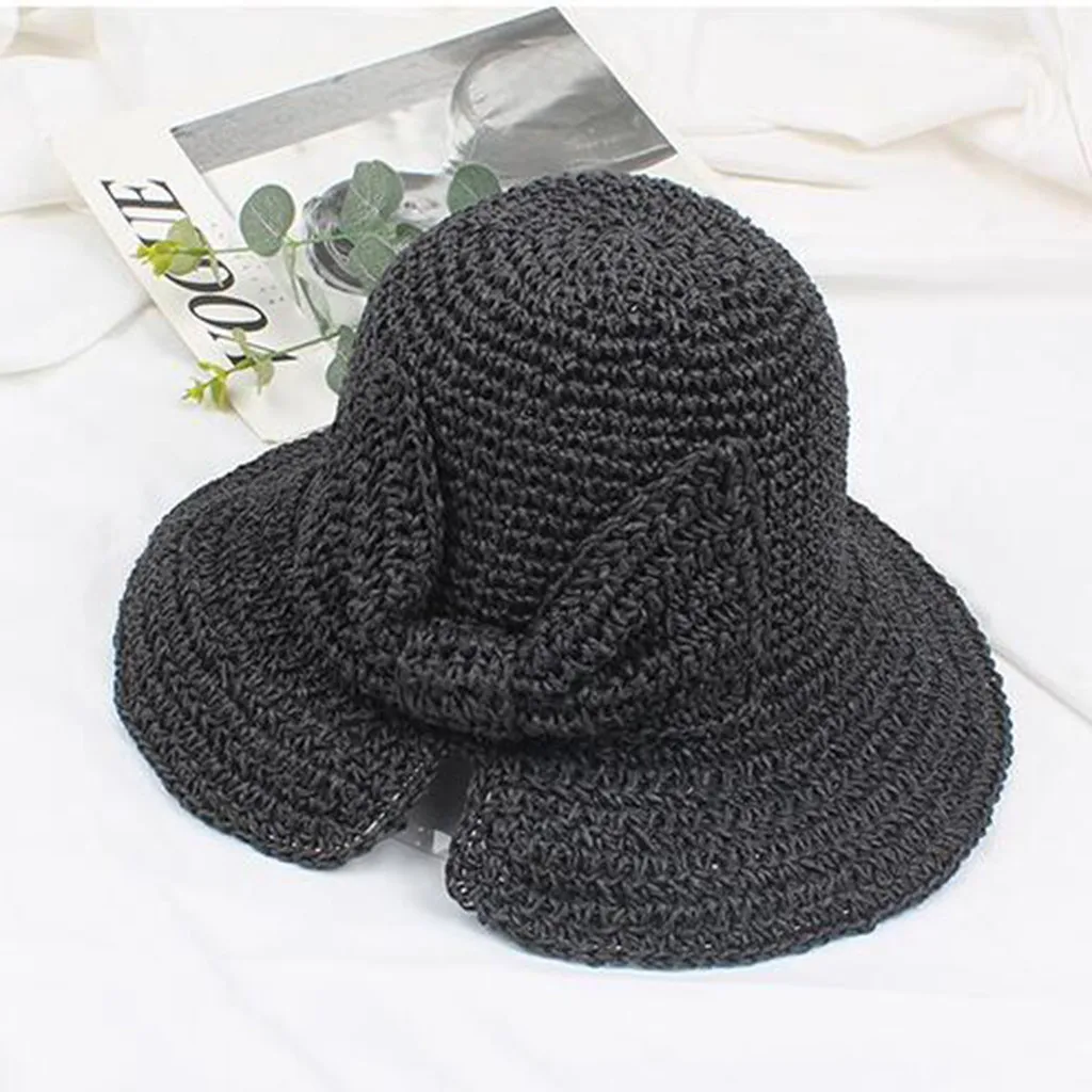 1х женская соломенная шляпа Bowknot в полоску Floppy Складная пляжная шляпа