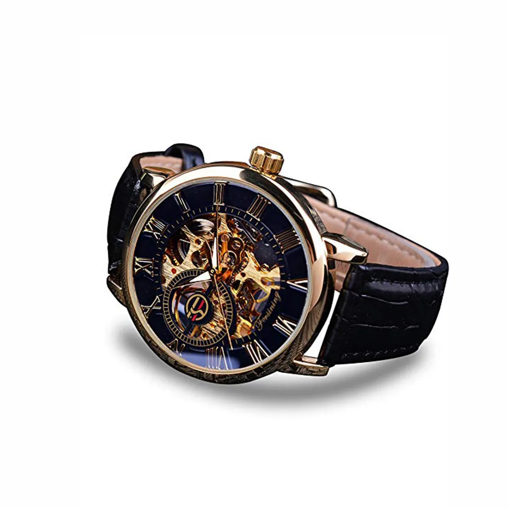 Мужские часы 3D полый гравировальный чехол Римский номер Скелет циферблат механические часы