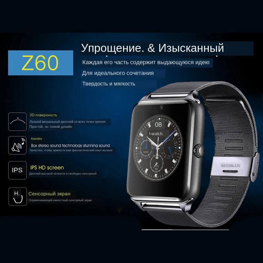 Форма циферблата: квадратная Тип часового механизма: электронный Тип дисплея: Интеллектуальный дисплей Группа Материал ремешка: нержавеющая сталь Тип застежки: Пряжка Цвет часов: золотой, черный, серебристый Размеры и вес Длина циферблата: 24 см Диаметр циферблата: 4,0 см Толщина корпуса: 0,8 см Ширина циферблата: 2,0 см Вес часов: 0,145 г Телефонный звонок: набор номера, беспроводные звонки, запись звонков и Телефонная книга/Bluetooth Вызов SMS: местные SMS/через синхронное Push-сообщение Android/iOS Музыкальный плеер: BT Музыка Анти-потеря: анти-потеря, найти друг друга, совместим с Android и Apple устройства Монитор наблюдения за сном: Да Шагомер: измеритель движения, счетчик калорий, запись пробега Напоминание о малоподвижности: напоминание о малоподвижности Камера: традиционная фотография, независимо от часов/удаленной камеры, часы управляют телефонами Android, фотографирующими Другие: будильник, календарь, секундомер, калькулятор; Совместимость с устройствами Android и Apple; QQ, WeChat, Facebook, Twitter и другая информация в реальном времени может нажимать на часы Модель умных часов: смартфон Z60 Умные часы со слотом для sim-карты GSM Шагомер, монитор сна, напоминание о сидячем положении Камера объектив Совместимость с Android и iOS Процессор: MTK6261D Память: ram 64 M + rom 128 M Размер экрана: 1,54 ips lcd с разрешением 240*240 пикселей Bluetooth: BT3.0 Разрешение камеры: 2,0 м Тип sim-карты: GSM sim-карта Диапазон частот GSM: GSM/GPRS 850/900/1800/1900 Аккумулятор: 350 мАч литий-полимерный аккумулятор Соединение Bluetooth в режиме ожидания: 2-3 недели Нормальное использование:> 2 дня Материал оправы часов: нержавеющая сталь Материал ремешка: натуральная кожа Совместимость с Android: Android 4,3 или выше Совместимость с iOS: iOS 7,0 или выше Размер циферблата: 46 мм * 42 мм * 11,5 мм Размер продукта: 26,5*4,2*1,2 см Примечание: посылка не включает sim-карту Посылка включает в себя: 1 * Смарт-часы 1 * usb кабель для зарядки 1 * Руководство пользователя на английском языке" Водонепроницаемый Описание (Жизнь водонепроницаемый), только может брызгать немного воды, нельзя мыть или в купании, плавании, дайвинге.Внимание для Android или IOS как связать