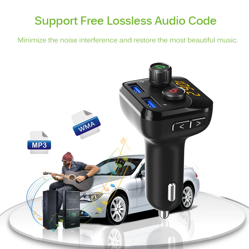Беспроводной fm-передатчик Bluetooth имеет быстрое двойное зарядное устройство USB и совместимость с протоколом быстрой зарядки/QC2.0.