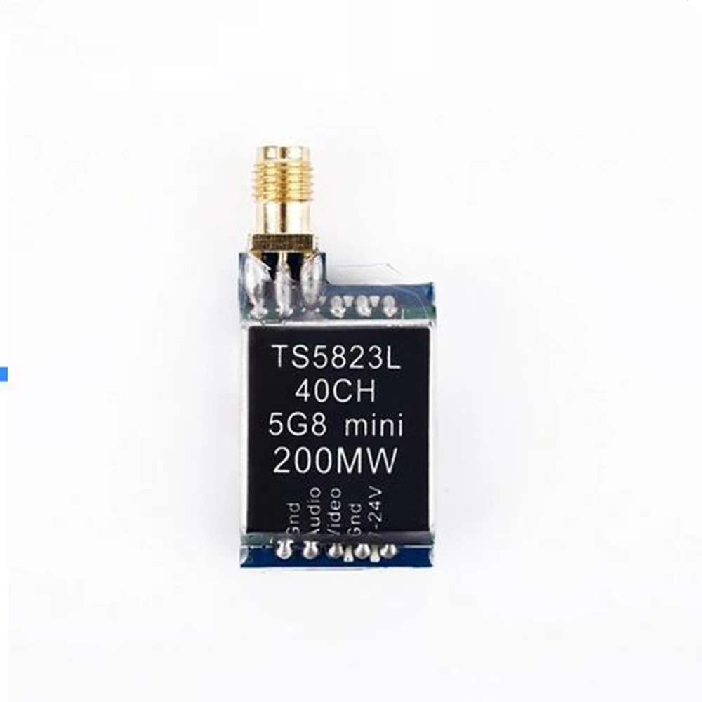 TS5823L/TS5828L 5,8G 40CH 200mW/600mW Мини аудио видео передатчик Tx с цифровым трубным дисплеем для FPV Особенности: Этот продукт имеет очень маленький размер и светильник вес форм-фактор, особенно для сегодняшнего маленького и светильник вес многомоторный двигатель самолета. Больше подходит для самолетов большой серии. Форма меньше большого пальца Каждый мини-плеер является идеальным выбором передачи изображения. Красный: Положительный Черный: отрицательный Желтый: аудио-и видеокабель Зеленый: аудио кабель Синий: заземления Технические характеристики: Канал: 40 Частота передачи: 5,6-5,9 ГГц Входное напряжение: 7-24 В Мощность передачи: 23dBm/200mW Рабочий ток: 190mA / 12V Рабочая температура: -10- + 85 Пропускная способность видео: 8 м Кодировка аудио: 6,5 м Антенна Тип: Передающий конец: RP-SMA Jack Антенна терминал: RP-SMA разъем Доска Цвет: синий Размеры: 38x18x8 мм (за исключением основания антенны) Вес нетто: 16 г Технические характеристики: Канал: 40 Частота передачи: 5,6-5,9 ГГц Входное напряжение: 7-24 В Мощность передачи: 28dBm/600mW Рабочий ток: 300 мА/12 В Посылка включает в себя: 1 х коробка передач 1 x Антенна 1 х кабель