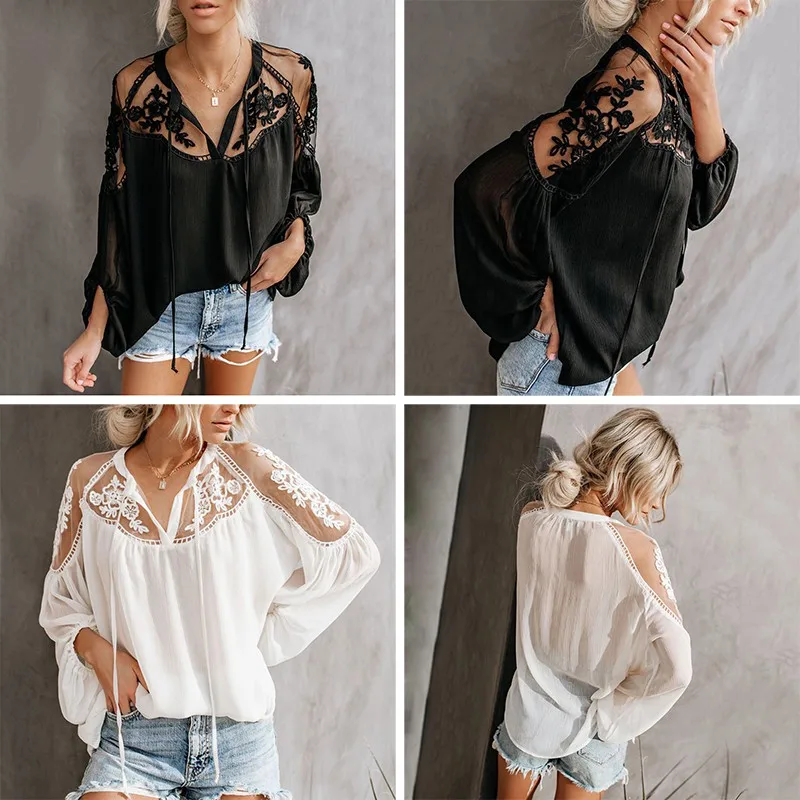 2. Базовый кружевной сетчатый топ с длинными рукавами делает вас расслабленным и уютным.