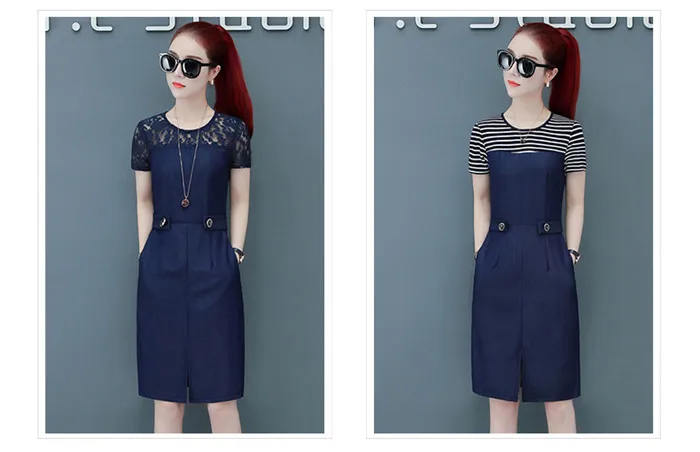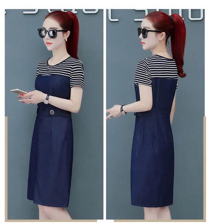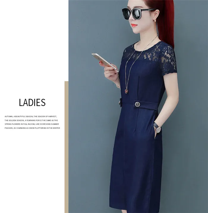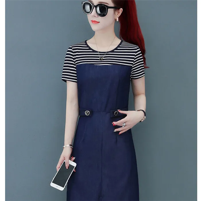 Женское джинсовое платье с карманами, синее повседневное джинсовое платье в Корейском стиле, модель OK168 на лето, 2019