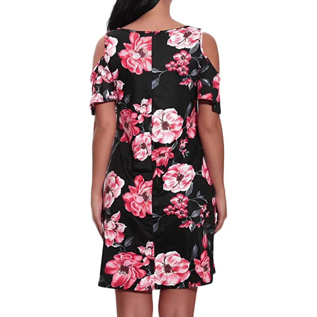 Женская повседневная одежда с открытыми плечамиСвободное платье с цветочным принтом
