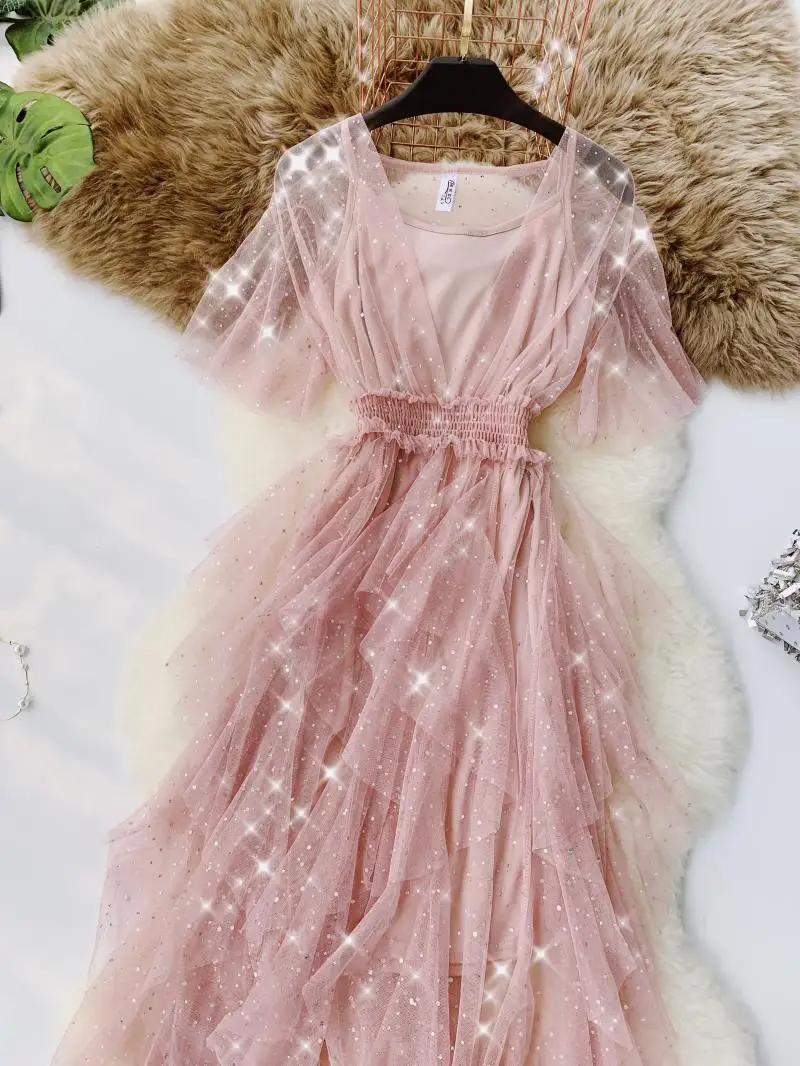Комплект из двух предметов: Топ + Сетчатое платье