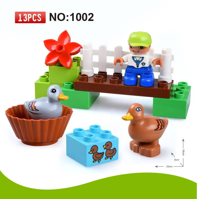 Happy Farm Zoo с мини животными фигурки большие частицы строительные блоки Совместимые с Duploe City DIY большие Кирпичи Детские игрушки