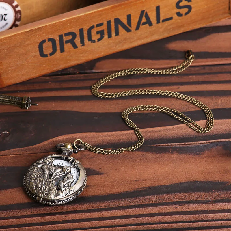 Карманные и Fob часы Бронзовый волк животное кварцевые карманные часы ожерелье женщин/мужские кулон часы подарок