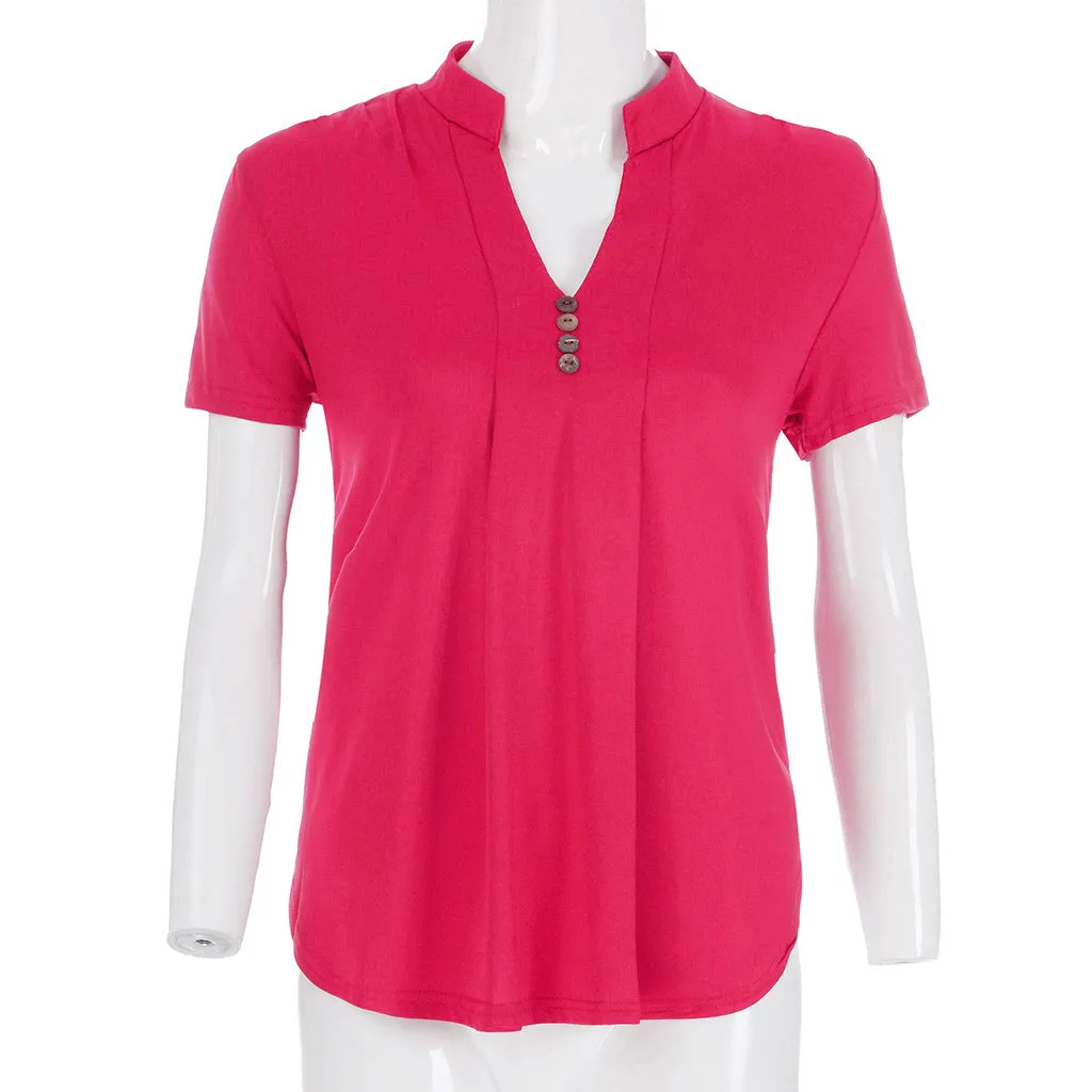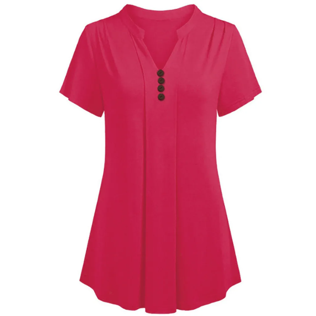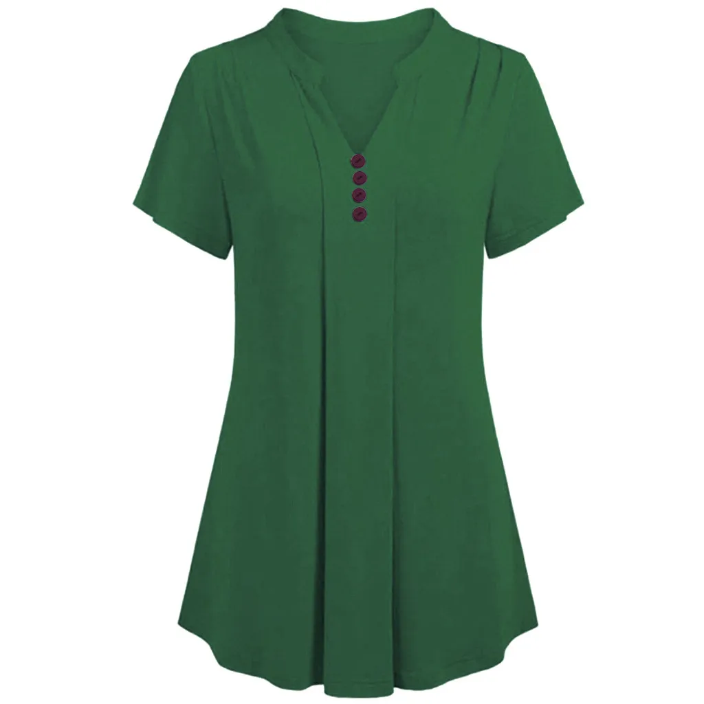 Женская S-6XL, плюс размер, короткий рукав, v-образный вырез, свободная футболка, Повседневная Туника, топы, блузка