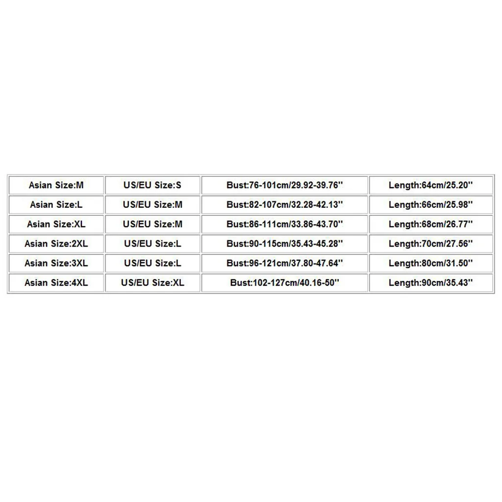 | Азиатский Размеры: 4XL | Размер США/ЕС: XL | Бюст: 102-127 см/40,16-50'' | Длина: 90 см/35,43'' |