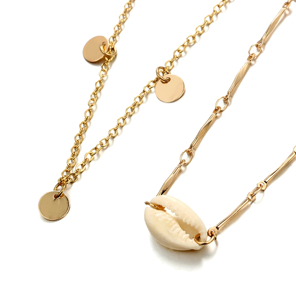 Этот комплект с ожерельем имеет раковину и круглый диск кулон, выглядит стильно.