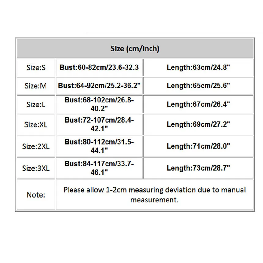 | Размер: 3XL | Бюст: 84-117 см/33,7-46,1" | Длина: 73 см/28,7" |