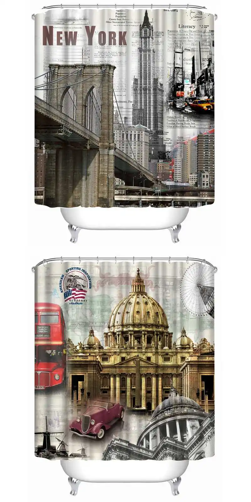 72х72-дюймовые полностью полиэфирные разноцветные занавески для душа с 12 кольцами