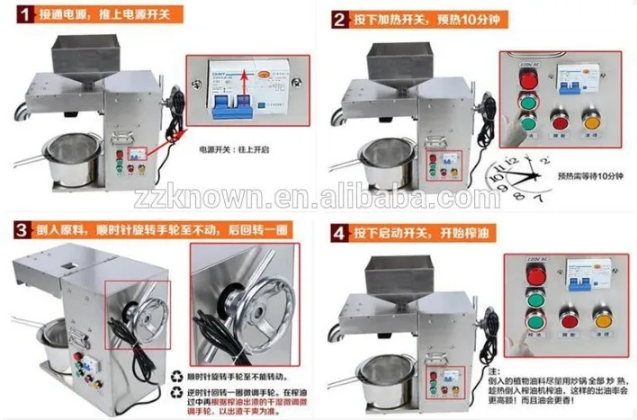 | Производство нефти в час | 18 кг арахисового масла, кунжутного масла, в общей сложности 20 фунтов, Масло Семян камелии 15 фунтов, 16 фунтов льняного масла |