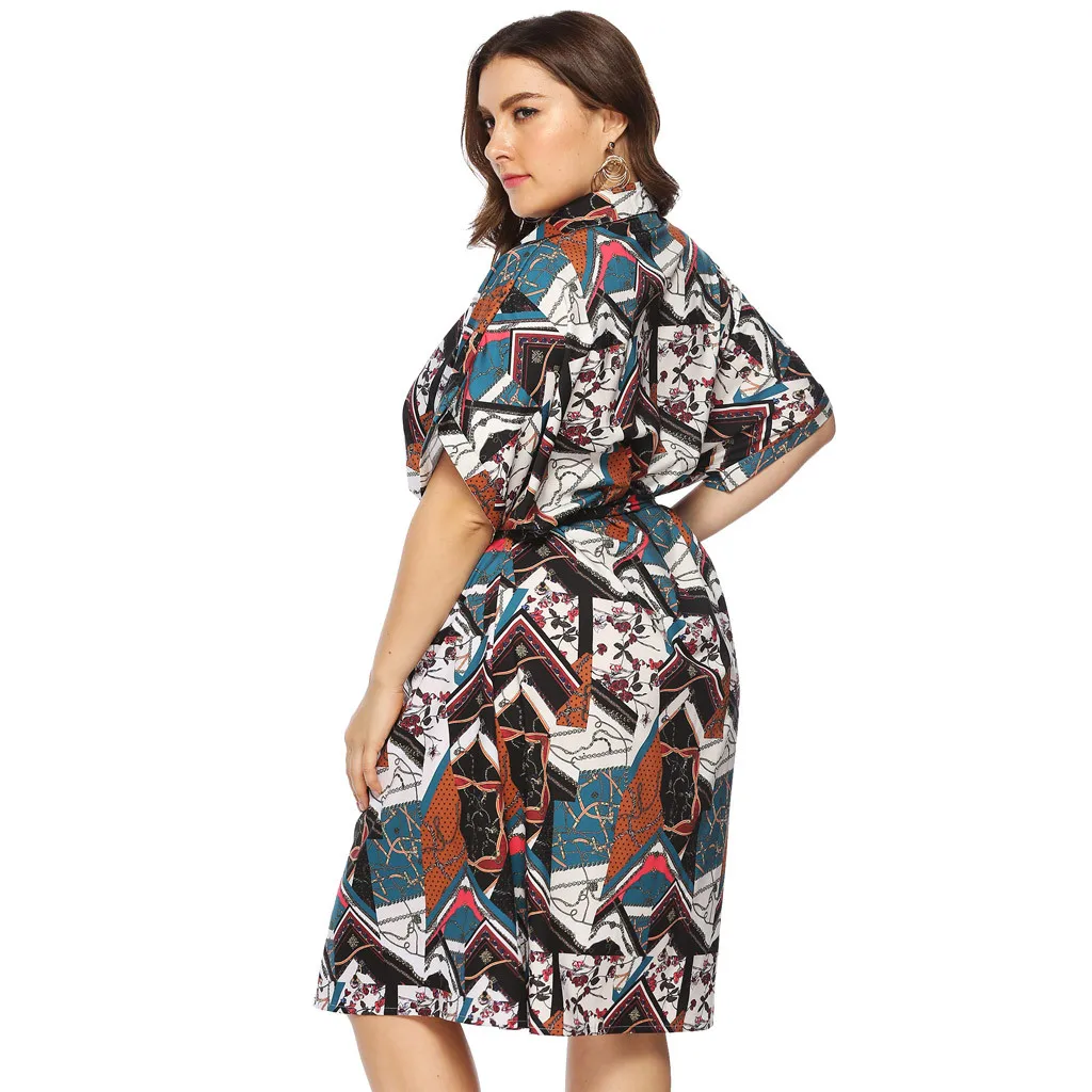 Женское Повседневное платье до колена с v-образным вырезом и коротким рукавом, вечернее платье большого размера