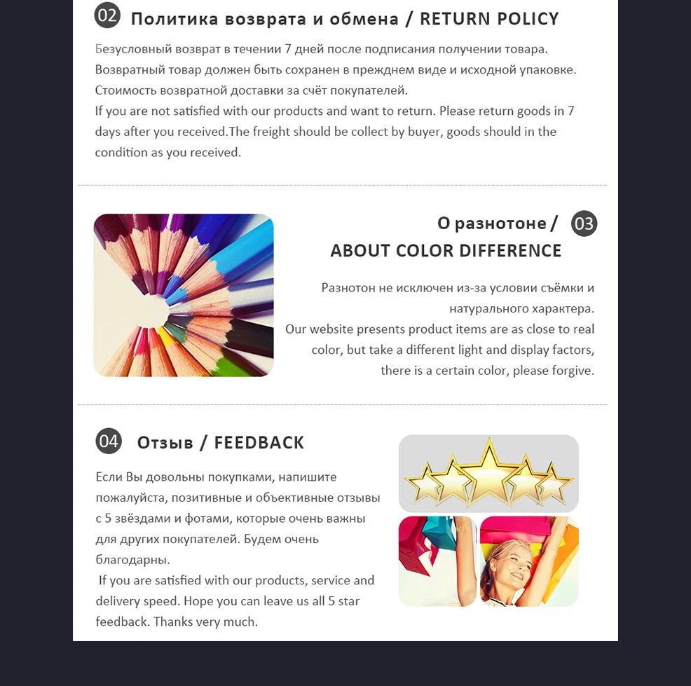 Советы SOPHITINA В1: Оптовая и Прямая поставка приветствуются? Для оптовой продажи мы предлагаем скидку или бесплатную Экспресс-доставку. Для прямой доставки, мы могли бы отправить товар вашим клиентам напрямую и не оставить информацию о нас, если вы хотите. В2: Что я могу сделать, когда время защиты покупки истекает? Если срок защиты вашей покупки истекает. Пожалуйста, свяжитесь с нами, и мы поможем вам расходовать его. Чтобы ваши деньги не поступали на мой счет.