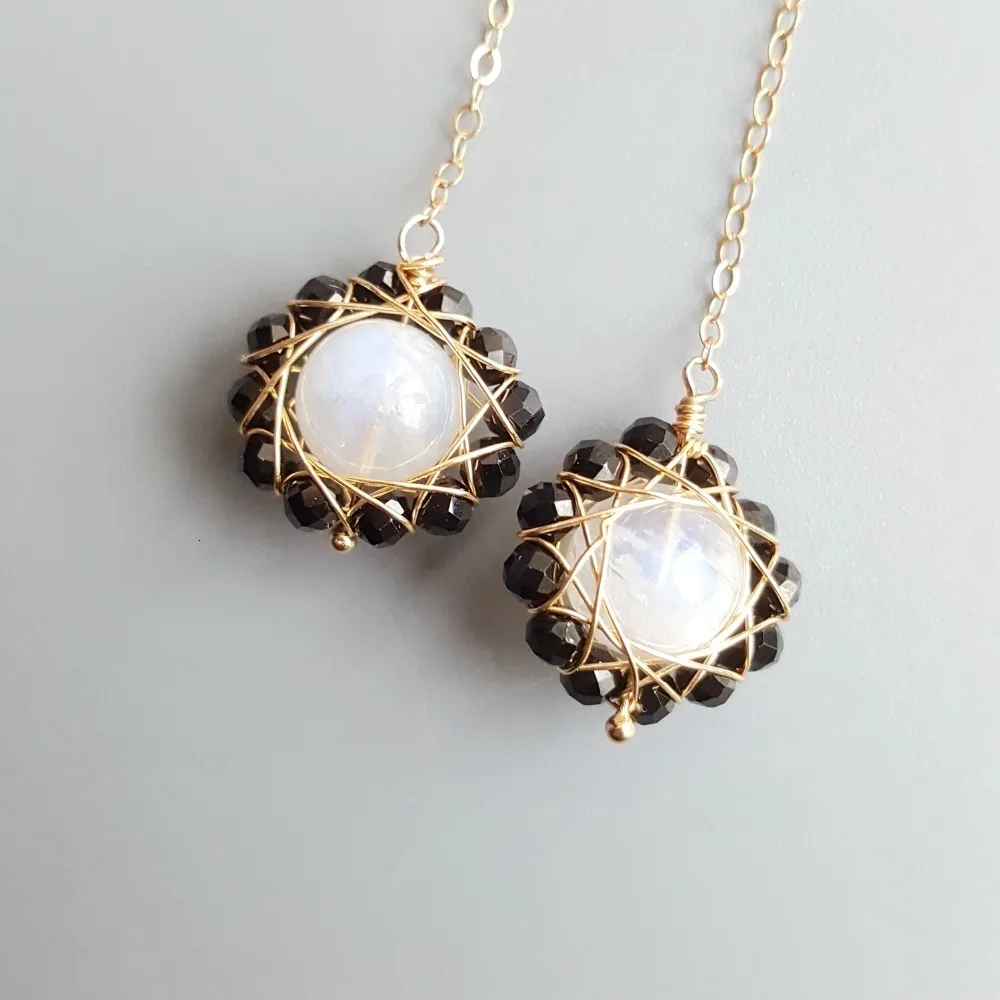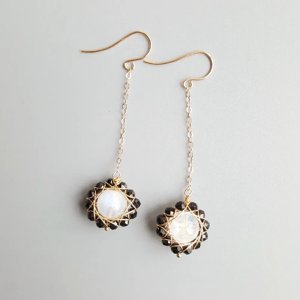 LiiJi серьги из натурального камня с лунным камнем черные стерлингового серебра 925