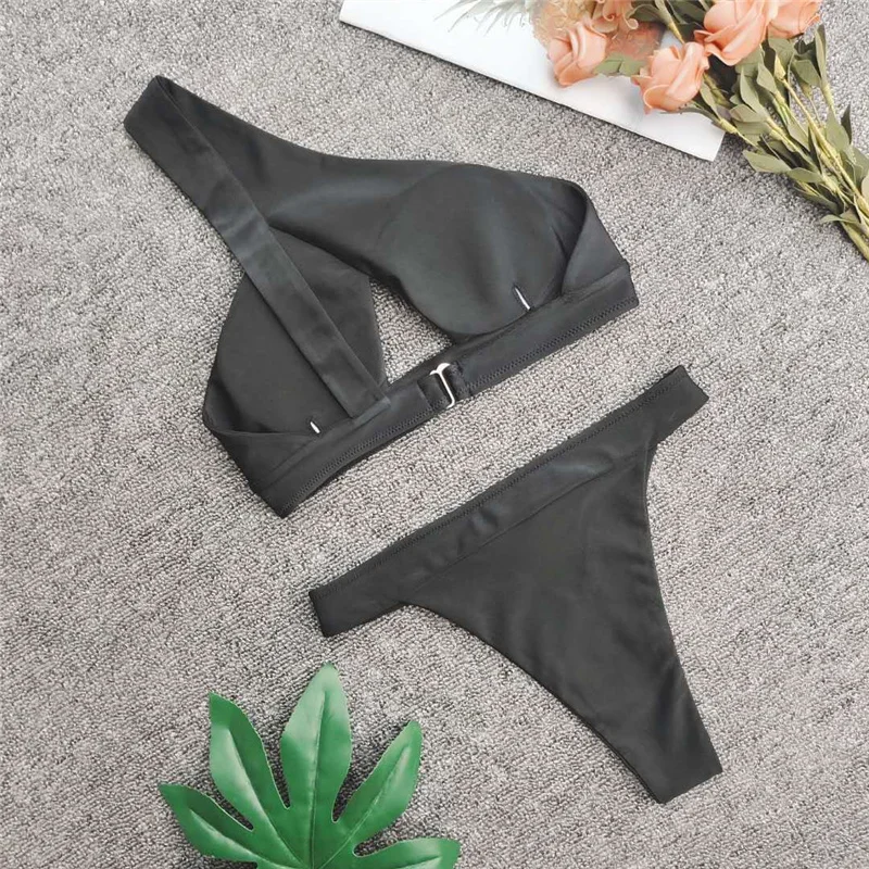 Треугольные бикини Rinabe блестящий купальник Женский однотонный комплект пуш-ап