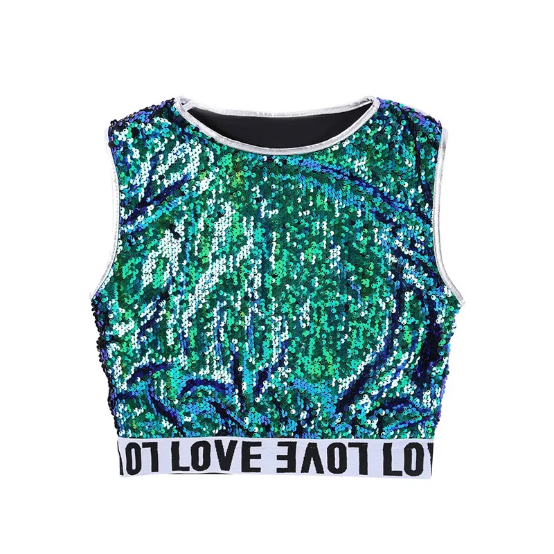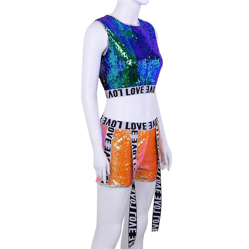 Женский Блестящий жилет с блестками; укороченный топ с шортами; танцевальные костюмы в стиле хип-хоп; мягкая и эластичная ткань.