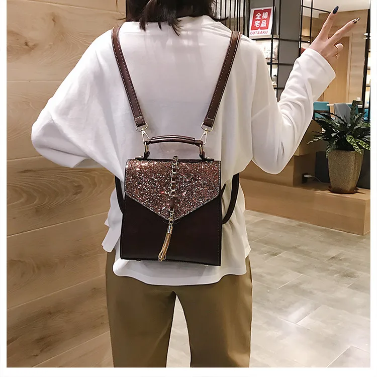 Блестящий женский рюкзак с блестками, женская сумка на плечо с кисточками, маленький рюкзак из искусственной кожи для девочек-подростков, школьная сумка, женский рюкзак, рюкзак