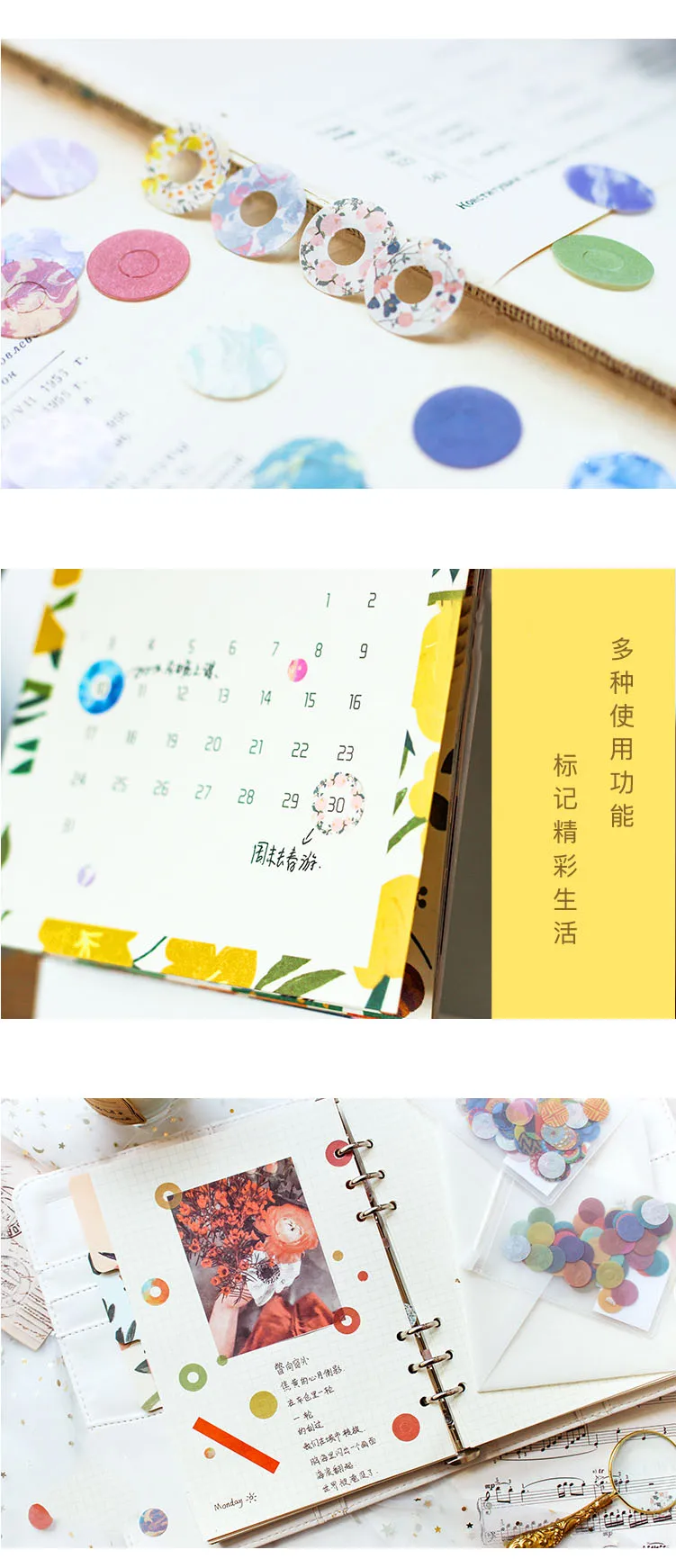 60 шт., винтажные канцелярские принадлежности, креативные наклейки на дырочки, одноцветные наклейки для детей, сделай сам, дневник, декоративные наклейки для скрапбукинга