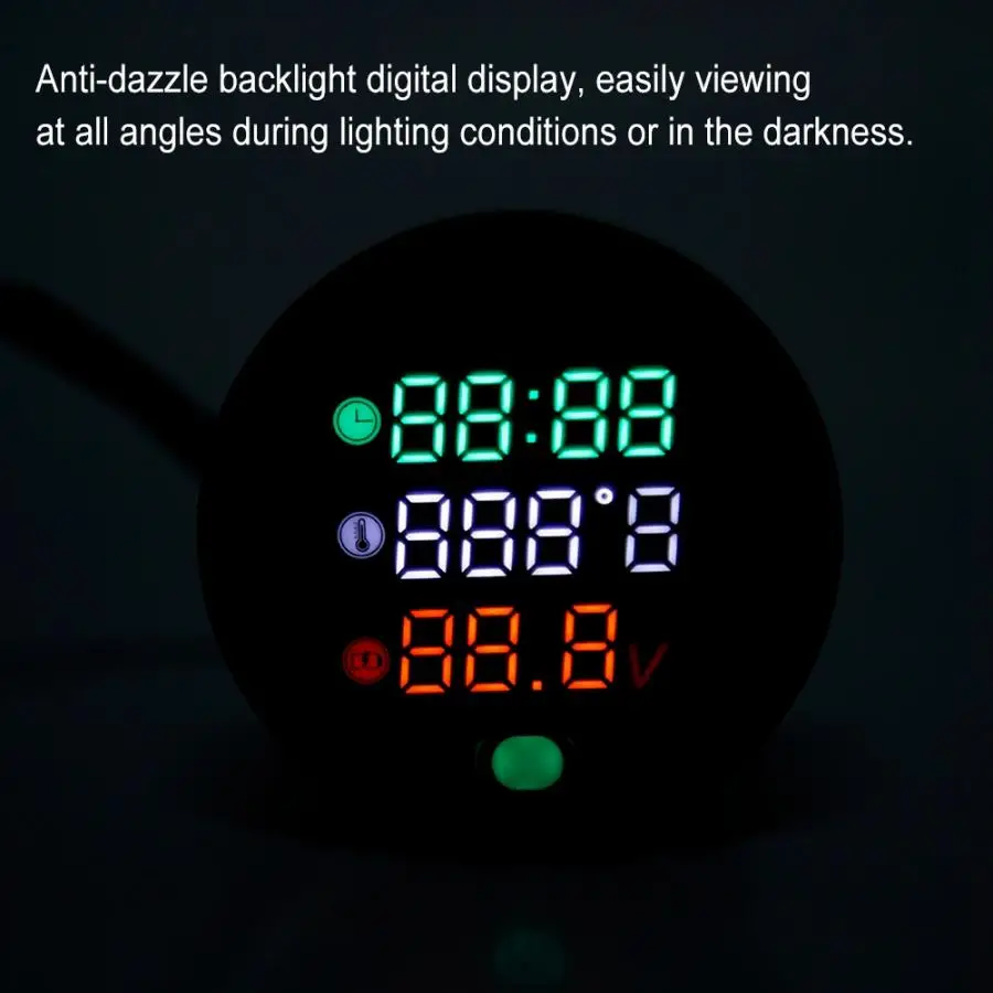 3-в-1 мотоцикл электронный цифровой термометр Вольтметр время часы датчик температуры