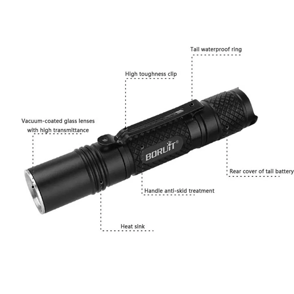Материал: Высокопрочный авиационный алюминиевый сплав Источник света: 1 шт. XP-L2 светодиодные лампы Яркость: 1200 люмен Диапазон: 255 метров Задний тактический переключатель: блики-средний свет-низкий свет-вспышка-SOS Аккумулятор: 1x14500 перезаряжаемый аккумулятор/1xAA (не входит в комплект) Схема памяти: по умолчанию необходимо закрыть переднюю передачу при включении. Защита: цепь постоянного тока, постоянная яркость, предотвращение переворачивания батареи Процесс: Военная стандартная трехступенчатая анодированная антиизносостойкая обработка Объектив: закаленное стекло с вакуумным покрытием Отражающая чашка: металлическое покрытие Водонепроницаемость: IPX8 Аксессуары: крышка фонарика, Ручная Веревка, уплотнительное водонепроницаемое кольцо, резиновая крышка Размер изделия: 100*18,5 мм Вес нетто продукта: 33,5 г
