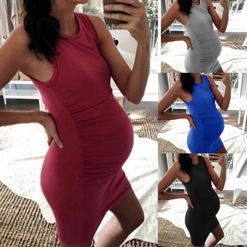 Сексуальное платье для беременных; материнство, майка с круглым вырезом, однотонное платье без рукавов
